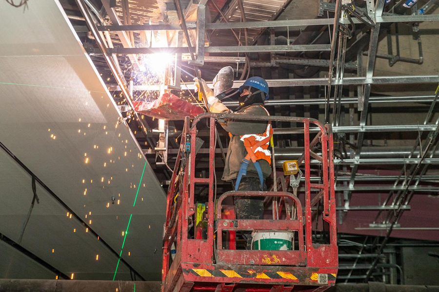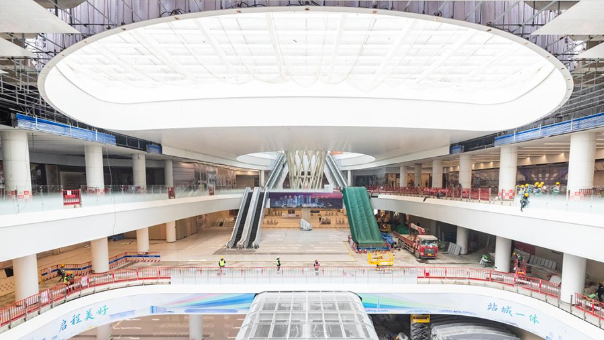 京雄快线雄安航站楼内,建设者在作业。牛思佳 摄