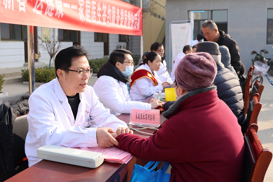 近日,河北省邢台市新河县卫生健康局组织家庭医生走进社区开展签约服务活动。活动现场,医护人员为居民免费测量血压、血糖,同时向居民提供健康指导,宣传家庭医生签约政策和惠民举措。