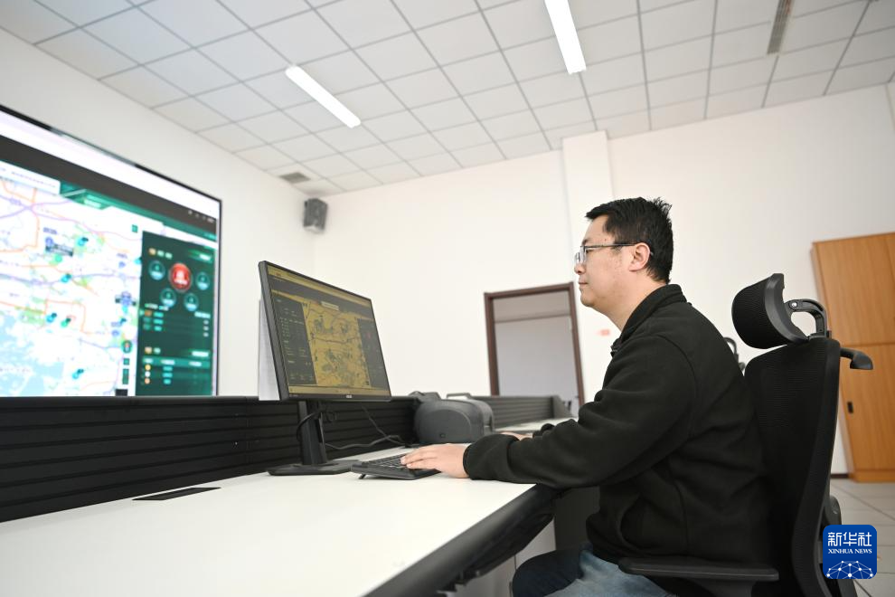工作人员在智慧林草综合管护平台上进行工作调度。新华社记者朱旭东 摄