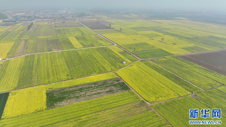 南宫市紫冢镇东紫冢村油菜花盛开。新华网发 田优 摄