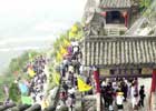 石牌坊是景区的第一座建筑物,牌坊高9米,宽12米,由47快青石组成,正中“娲皇宫”三个镏金大字由原中国书协副主席欧阳中石先生提写。 |