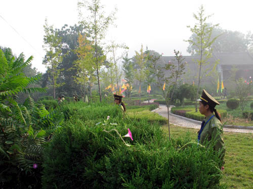 补天广场正中是一个巨大的太机八卦图,是景区内最明显的一处道教标志。“补天广场”四个字是启功的弟子,中国书协会员张学明所题。 |