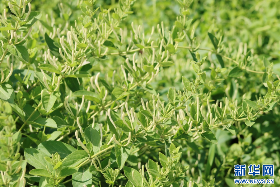 献县金银花进入采收期,花苞饱满,俏立枝头。新华网发 彭锦帅摄pagebreak