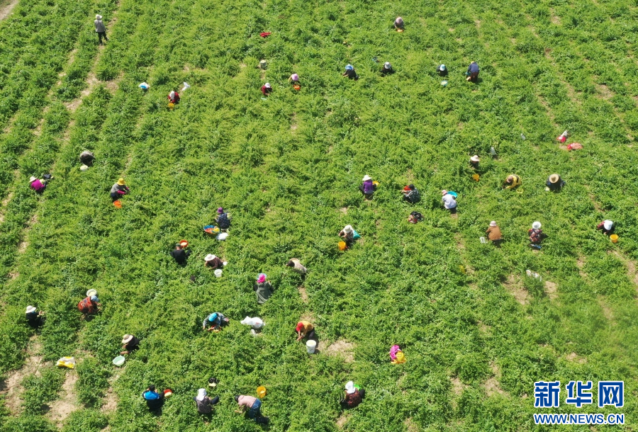日前,在河北省沧州市献县,金银花进入采收期。农户们抓紧采摘和烘干,金银花田里一片忙碌景象。据了解,目前当地种植金银花1500余亩,年产优质干花150吨,产值达2000余万元。