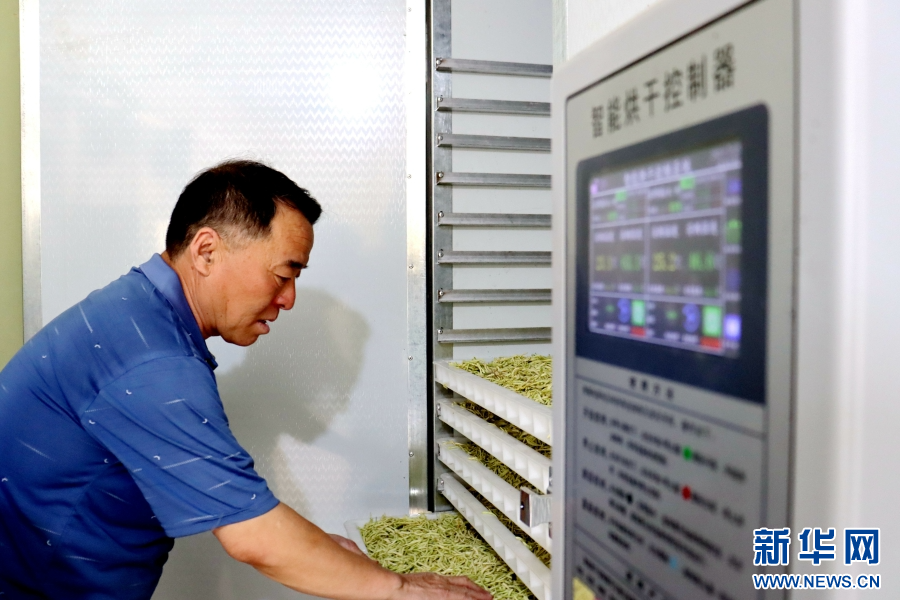 种植户使用智能烘干设备,对金银花进行烘干操作。新华网发 彭锦帅摄