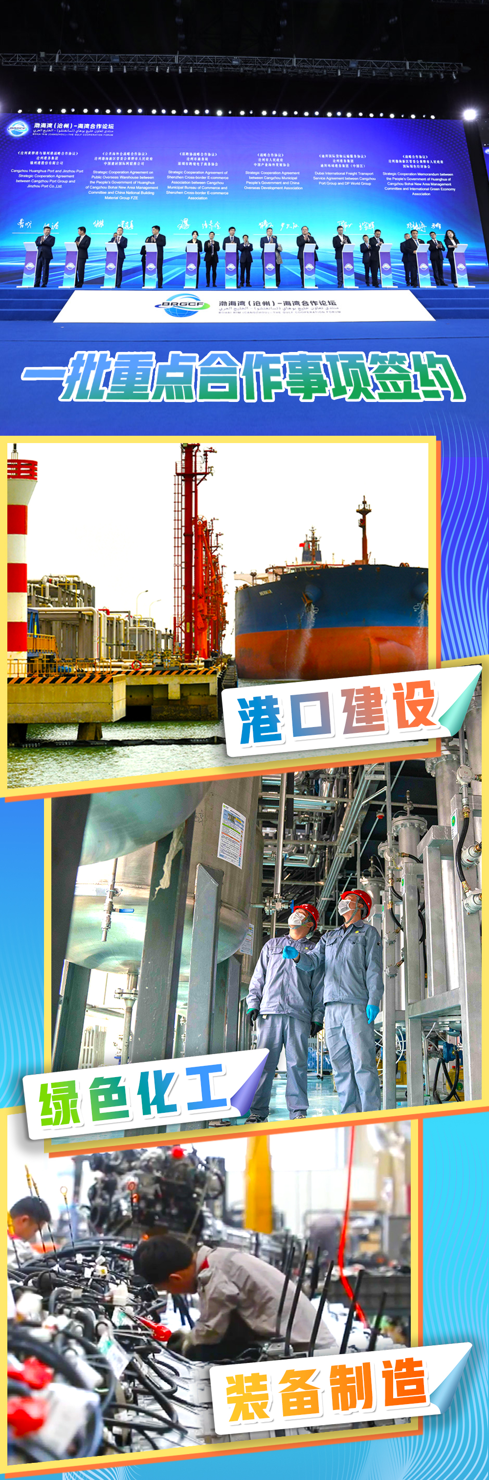 在近日举行的渤海湾(沧州)-海湾合作论坛开幕式上,6个重点合作事项和6个重点项目进行了集中签约,涉及港口建设、绿色化工、装备制造、商贸物流、新能源等多个领域。(新华网)