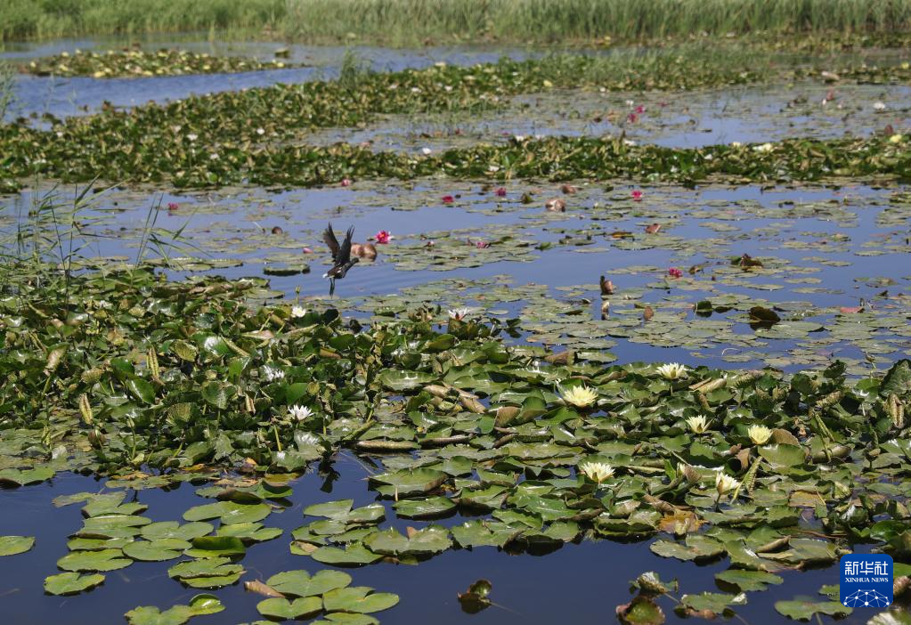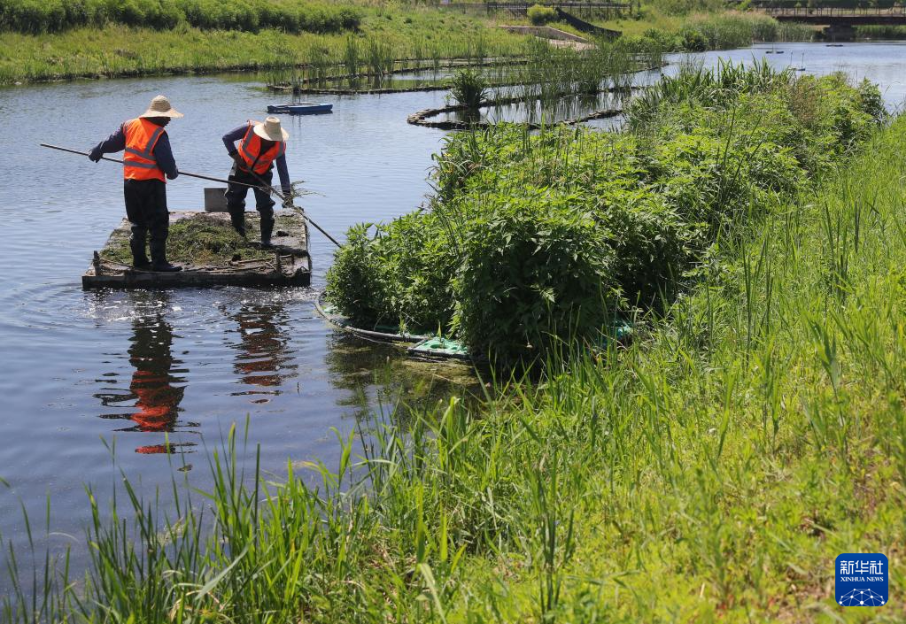 6月6日拍摄的秦皇岛市海港区境内的排洪河湿地景色。