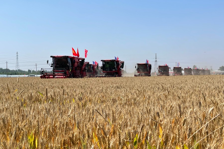 6月6日,河北省麦收“第一镰”在邯郸市魏县展开。据河北省农业农村厅统计,今年河北夏收小麦播种面积3377.1万亩。(新华社记者郭雅茹、赵鸿宇)