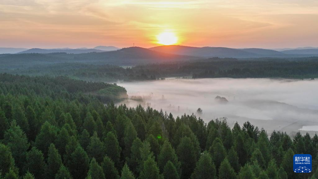 6月24日拍摄的塞罕坝国家森林公园晨景(无人机照片)。