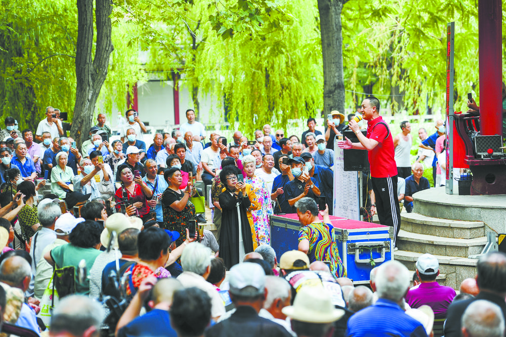 当天艺术团票友带来了《龙江颂》《洪湖赤卫队》《杜十娘》等河北梆子经典剧目选段,赢得了阵阵掌声与喝彩。随着河北省河北梆子剧院国家一级演员、梅花奖获得者邱瑞德与天津河北梆子剧院国家一级演员张翠香先后登台,现场气氛越来越热烈。邱瑞德演唱了传统戏《窦娥冤》和《蝴蝶杯》选段,还应戏迷要求表演了一段现代戏《李保国》的念白。下台后他满头大汗,戏迷们纷纷递上纸巾和矿泉水。“我这汗一是天热,再就是激动的。”邱瑞德坦承一上场面对观众的掌声和笑颜就特别感动,眼眶都湿润了,声音也有些哽咽:“河北作为北方戏窝子名不虚传,看到这么多的戏迷支持家乡戏,支持我们演员,我觉得非常幸福。我愿意和戏迷朋友共同努力,把河北梆子越唱越红火。”张翠香为戏迷带来了《杜十娘》《大登殿》的选段,从她一进场就不断有戏迷跟她打招呼,“欢迎张老师”“我很喜欢你的戏”……石家庄人对河北梆子的热爱令她印象深刻,“一来看到那么多戏迷真的特别震撼,早就听说河北文化氛围好,我也期待能多来参加这样的活动,大家一起为发展河北梆子出力。”