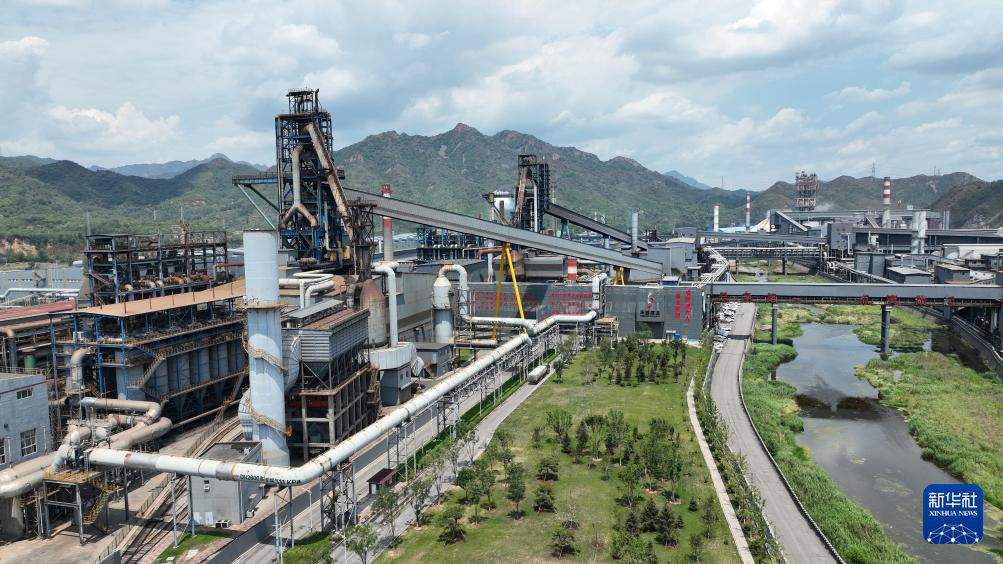 这是7月11日拍摄的承德市鹰手营子矿区一家特钢企业(无人机照片)。