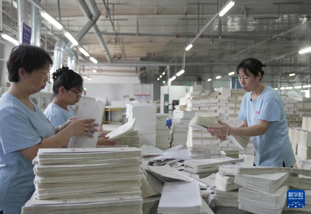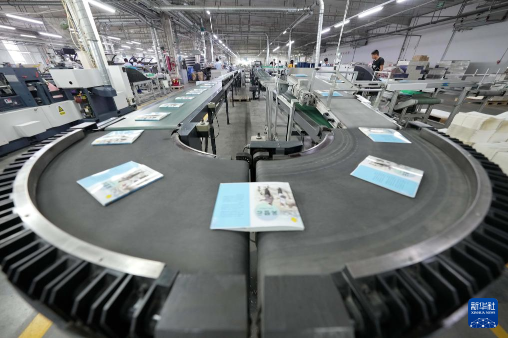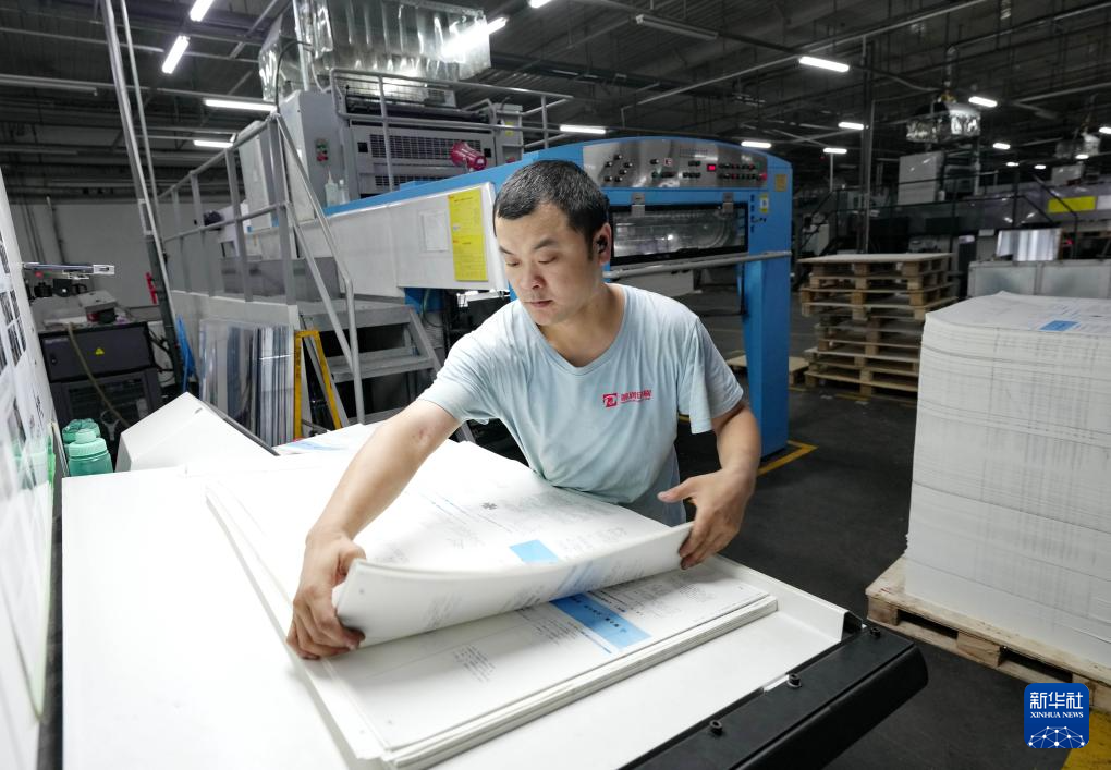 7月23日,工人在河北省肃宁县的一家图书印刷企业的生产车间工作。