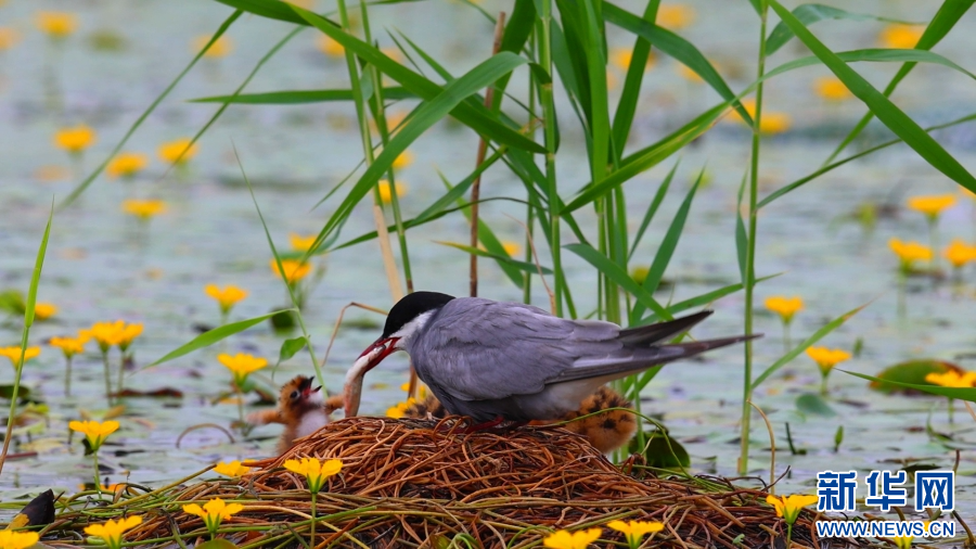 盛夏时节,“候鸟天堂”白洋淀碧波荡漾、芦苇摇曳,成群的灰翅浮鸥在这里安家。不少“鸟妈妈”“鸟爸爸”将捕到的小鱼带回淀面浮巢内,投喂可爱的“鸟宝宝”。温馨的“亲子时光”令人动容。