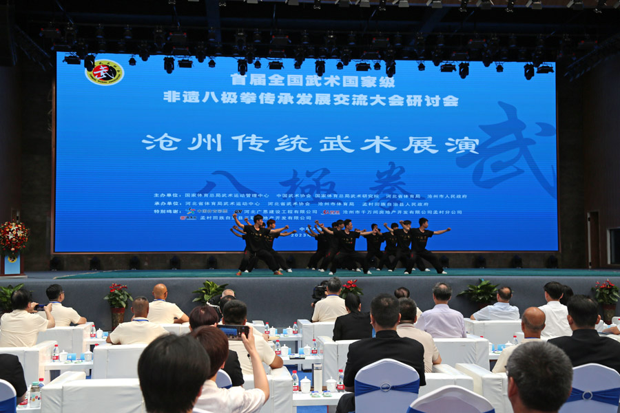 此次研讨会是首届全国武术国家级非遗八极拳传承发展交流大会(以下简称交流大会)的组成部分。交流大会由国家体育总局武术运动管理中心、中国武术协会、国家体育总局武术研究院、河北省体育局和沧州市人民政府主办,自7月26日开始,到8月1日结束,为期7天。交流大会通过开展“赛、论、展、游”等一系列活动,对传统武术项目进行立体化、多元化、全方位展示。