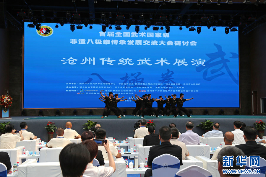 新华网石家庄7月28日电(魏会博)7月28日,首届全国武术国家级非遗八极拳传承发展交流大会研讨会在沧州市孟村回族自治县举行。近百名武术界人士齐聚一堂,共同探讨传统武术文化的传承与发展。