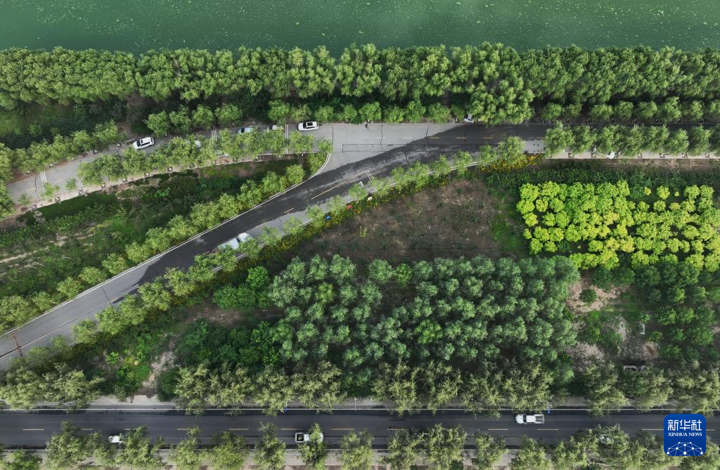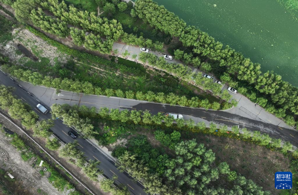 8月22日拍摄的唐山市丰南区城区通往南孙庄镇的唐津运河景观路(无人机照片)。