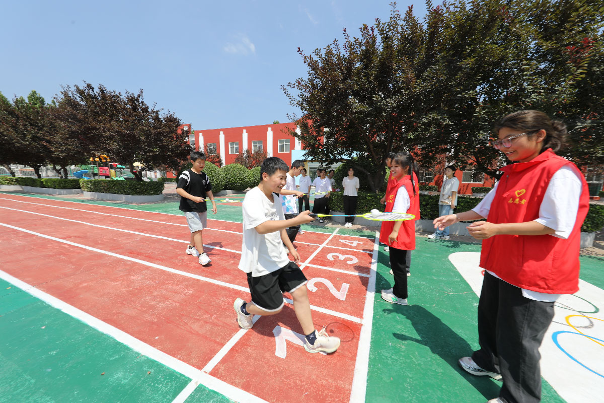 大学生志愿者与孩子们一起做游戏。孙海峰 摄