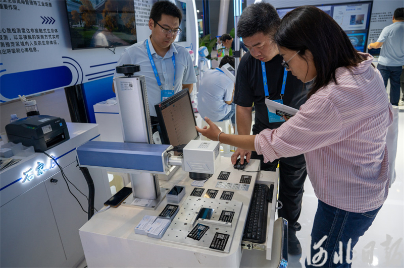 9月7日,石家庄(正定)国际会展中心,石家庄展区内的光纤激光打印机。