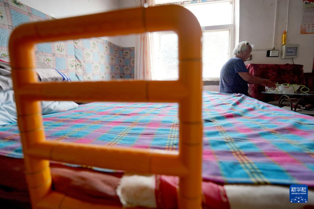 河北省巨鹿县后辛庄村85岁的徐遂的床上安装了便于上下床的扶手(9月8日摄)。