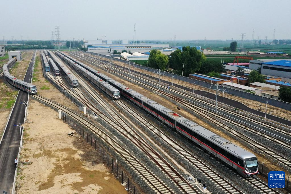 7月27日在河北省保定市满城区河北京车智能制造基地试车场拍摄的地铁列车(无人机照片)。