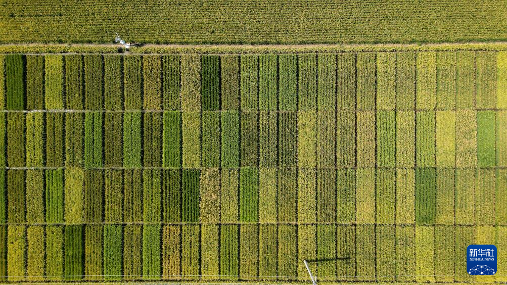 乐亭县数字循环农业智慧园区内由盐碱地改良而成的水稻试验田(9月14日摄,无人机照片)。