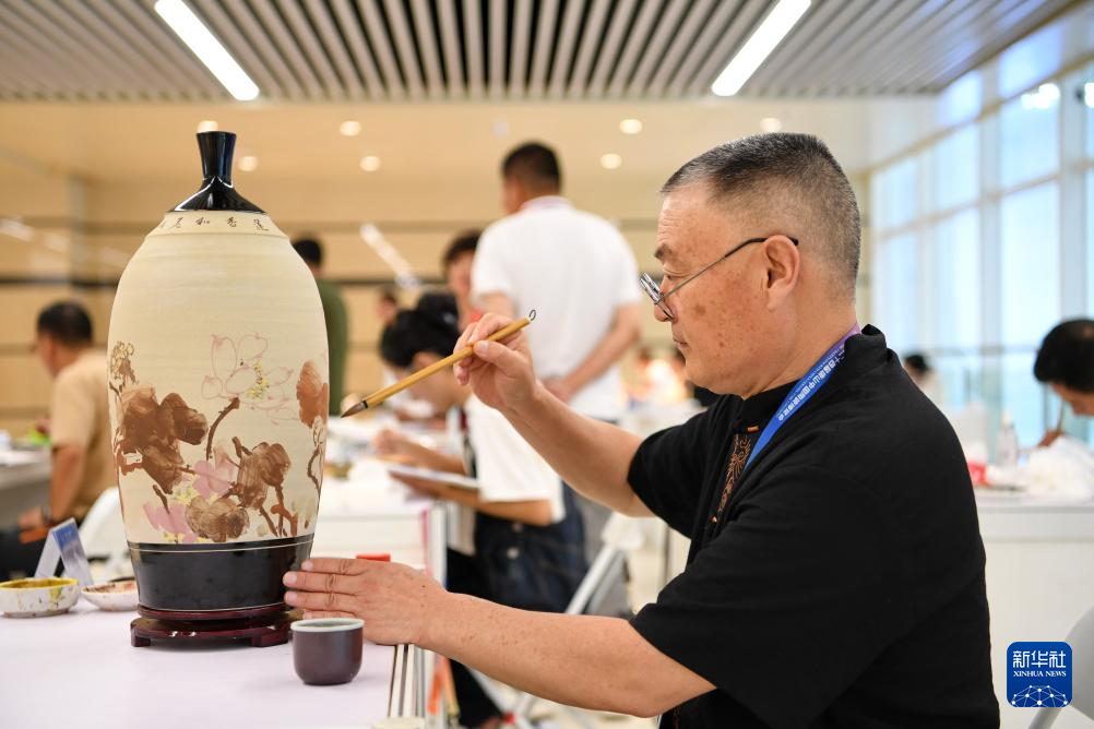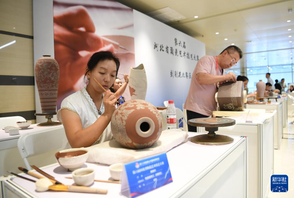 9月16日,在第二十四届唐山中国陶瓷博览会现场,参加陶瓷艺术技艺大赛的选手在比赛中。