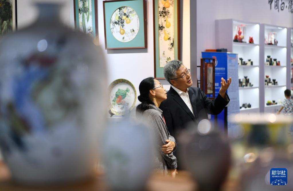9月16日,参观者在第二十四届唐山中国陶瓷博览会现场参观。