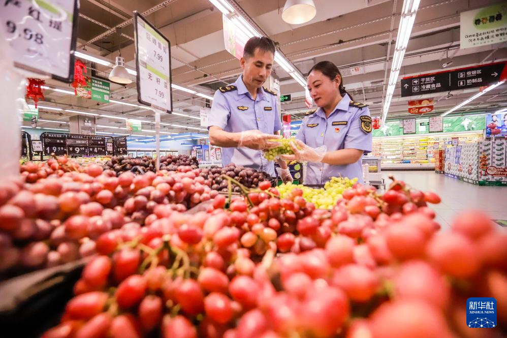 9月22日,市场监督管理局的工作人员在河北省遵化市的一家超市检查水果质量。