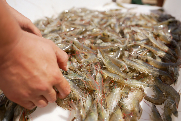金秋时节,在河北省沧州市海兴县盐碱滩涂养殖池,养殖户正忙着捕捞对虾,一派繁忙景象。近年来,当地依托盐碱滩涂搞起了特色水产规模化养殖,打造“蓝色粮仓”,目前已成为海兴县主导产业之一。(新华社记者骆学峰)