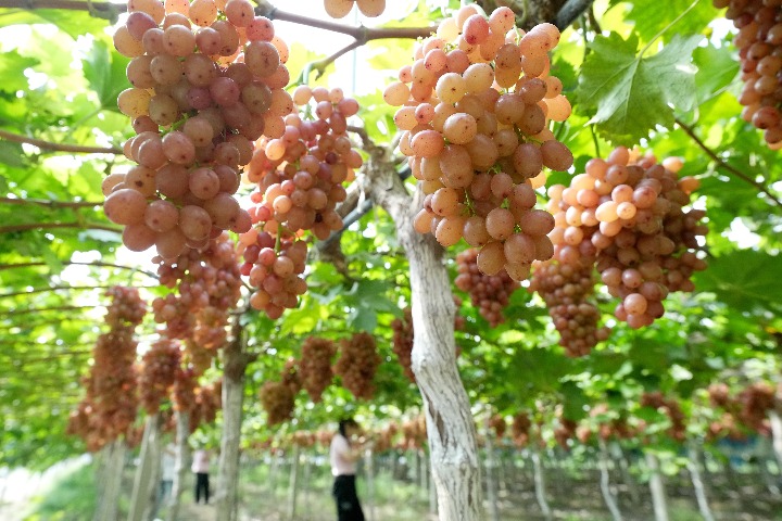 近日,河北省晋州市种植的葡萄进入成熟期,果农们忙着采收成熟的葡萄供应市场。近年来,晋州市引导农民因地制宜发展阳光玫瑰、红玫瑰、蜜光等优质葡萄种植,促进农民增收,助力乡村振兴。(新华社记者杨世尧)