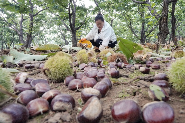 近日,河北省东部地区的唐山、秦皇岛、承德等市的板栗陆续成熟,当地农民开始适时进行收获。(新华社记者杨世尧)
