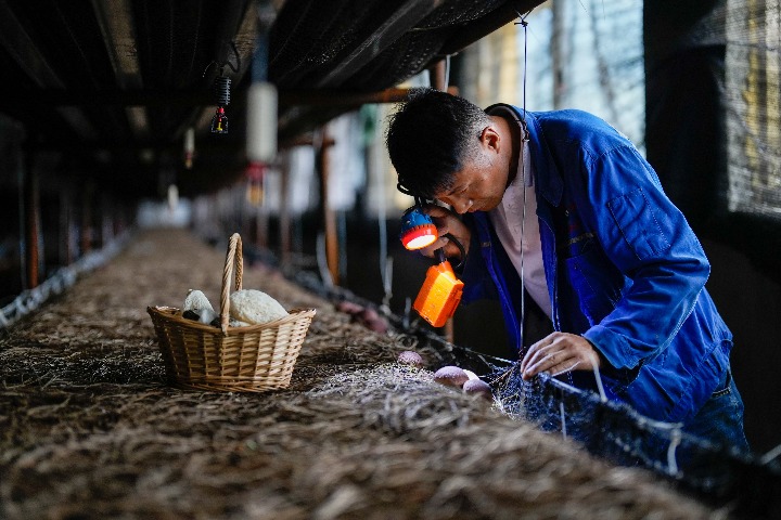 近年来,河北省迁西县在推进农业产业化发展的过程中,引导当地农民发展竹荪、栗蘑、鸡枞菌等特色食用菌种植,培育出一批成规模、效益高的农业特色产业片区,有效助推乡村振兴。(新华社记者牟宇)