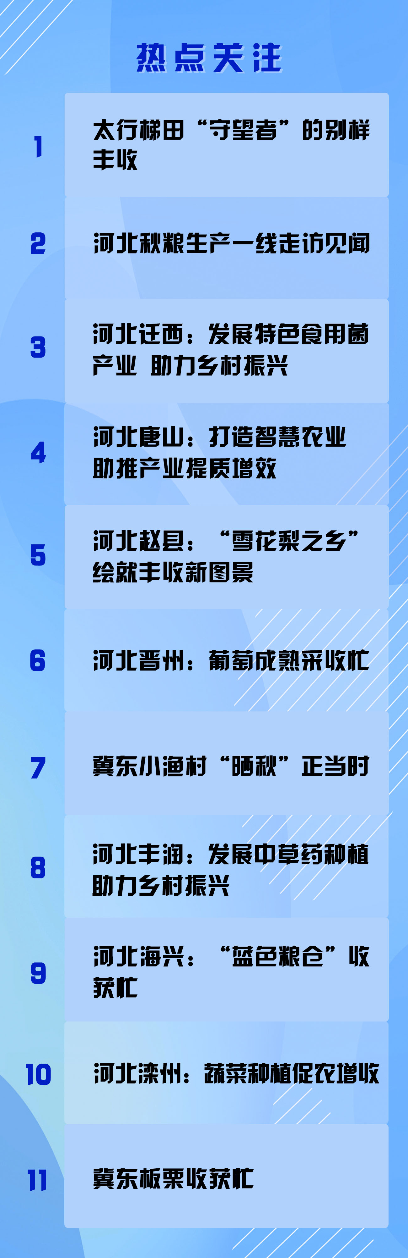 金秋送爽,燕赵大地秋粮即将迎来大面积收获,各种经济作物次第成熟,农田上处处是忙碌身影,田野里孕育着丰收希望。(新华社记者郭雅茹、赵鸿宇)