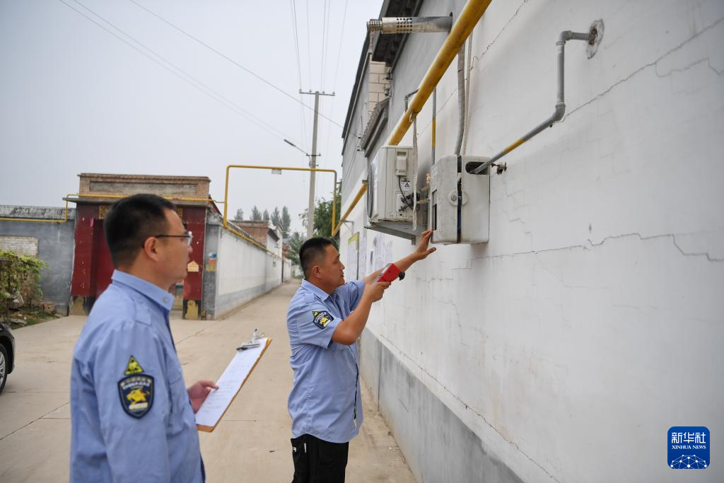 9月27日,工作人员在遭受洪水影响的河北保定高碑店市潘家营村查验燃气设备运行情况。