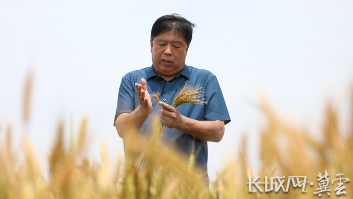 张志清正在检查“捷麦19”的生长情况。长城网·冀云客户端记者 李佳琦 摄