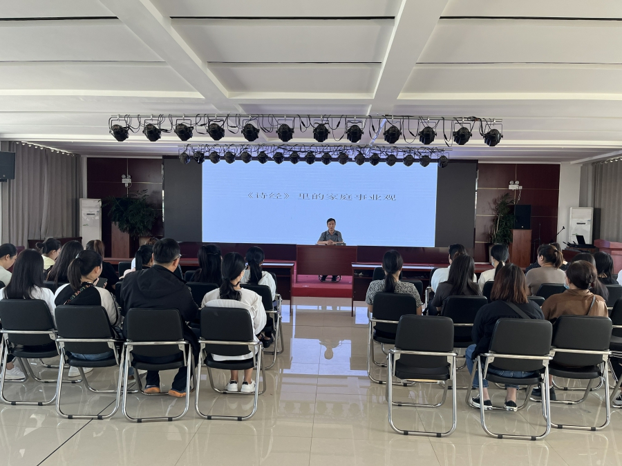 王福利向社区居民讲解《诗经》里的家庭事业观。
