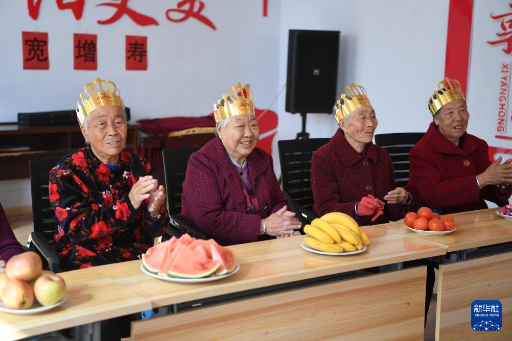 10月14日,居住在河北省康保县土城子镇互助幸福院的老人们在过集体生日。