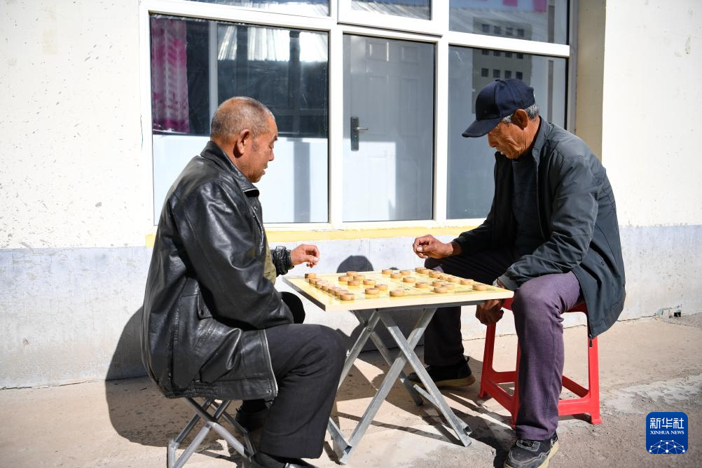 10月14日,居住在河北省康保县土城子镇互助幸福院的老人们在院子里下象棋。