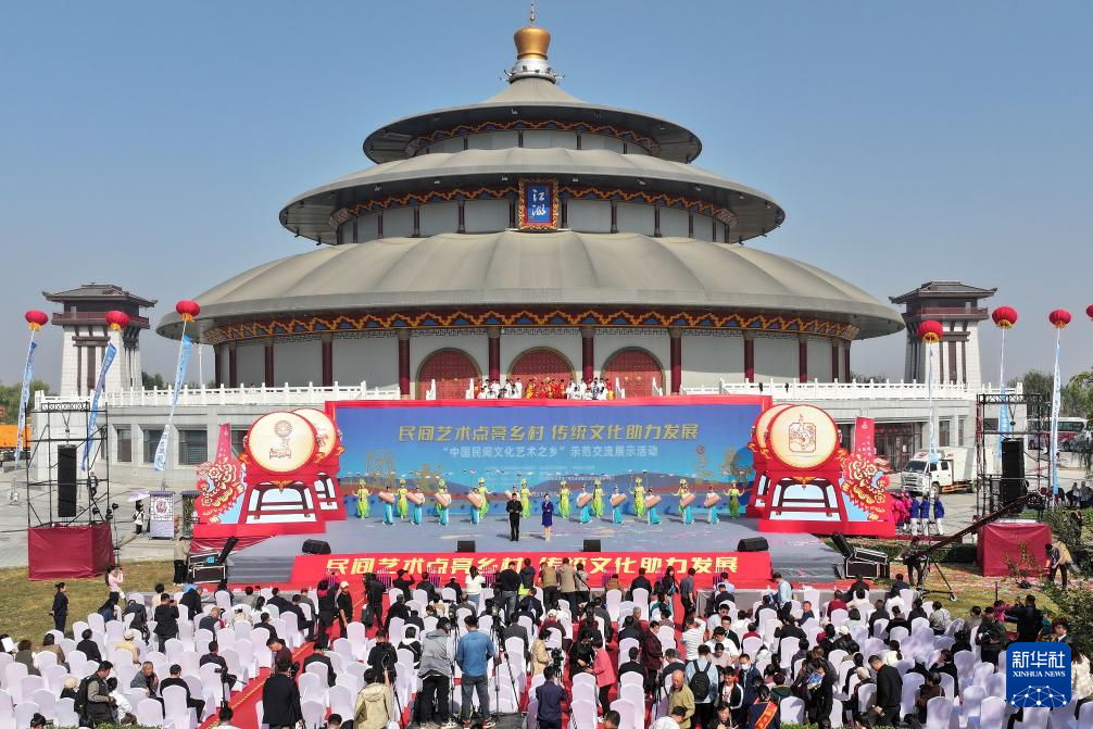 10月25日,演员在“中国民间文化艺术之乡”示范交流展示活动现场表演节目(无人机照片)。