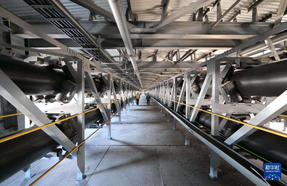 11月12日,工人在唐山海港经济开发区管带机廊道内巡检。