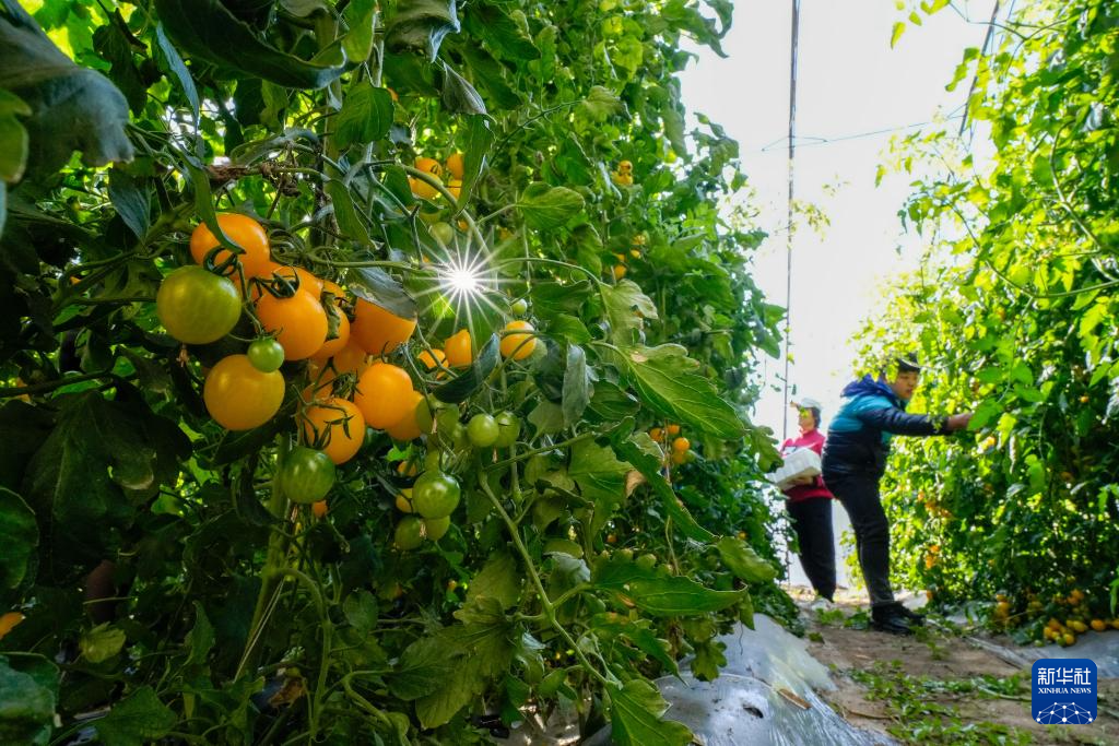 11月26日,河北省滦州市雷庄镇后店子村农民在大棚内采摘水果西红柿。