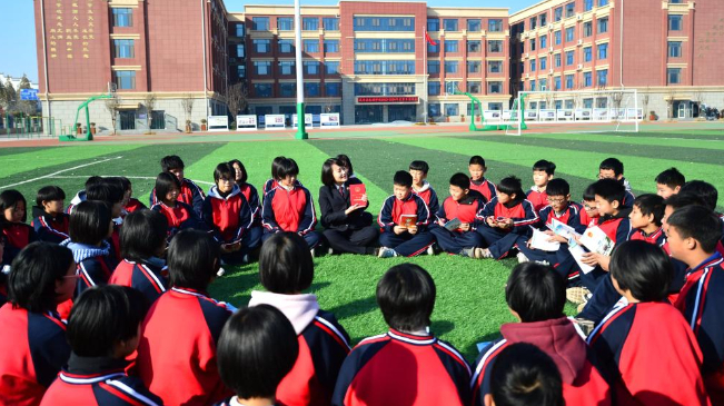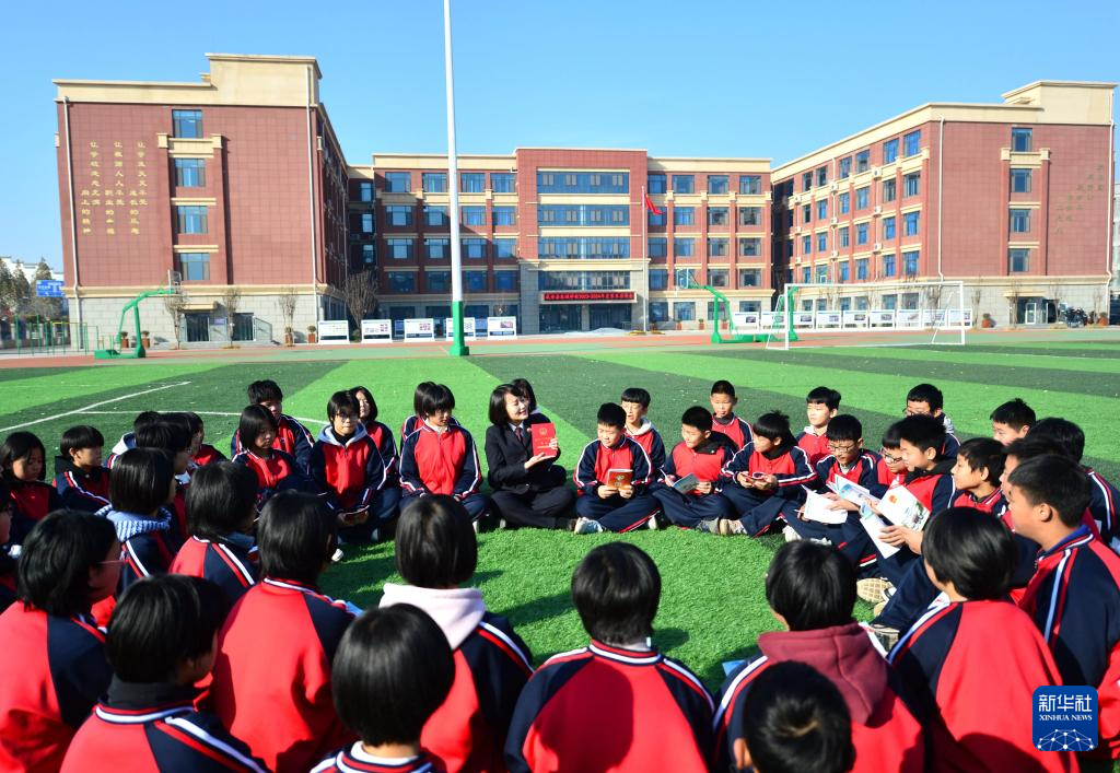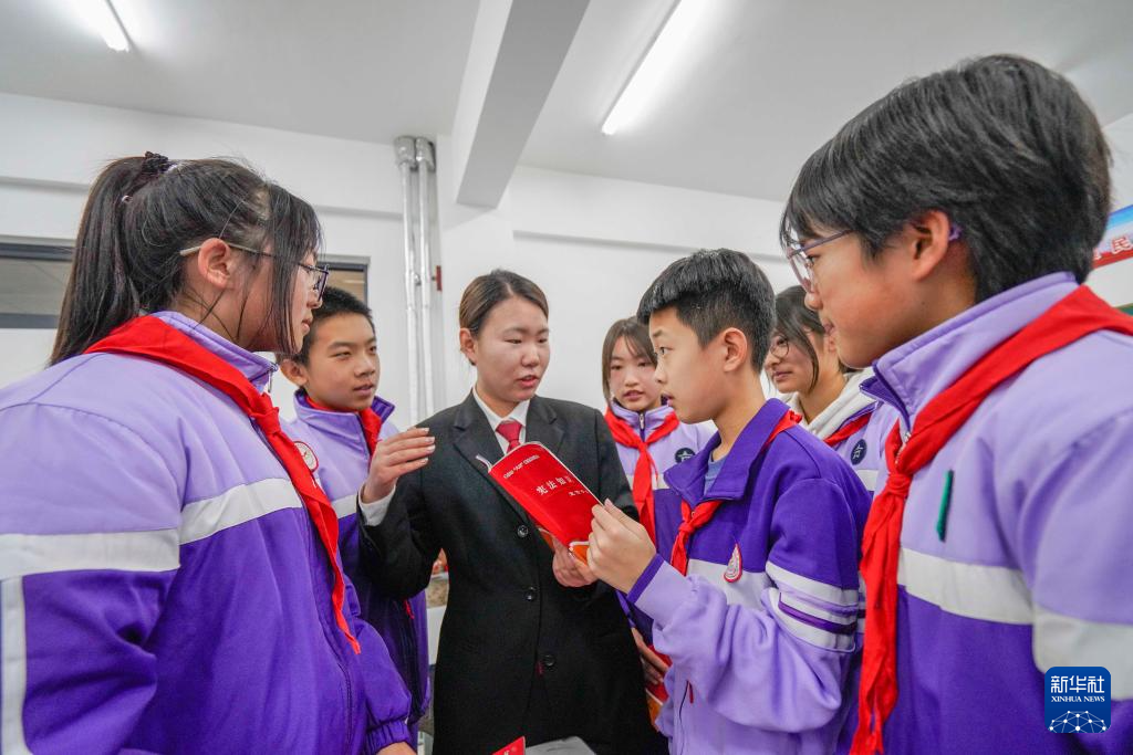 12月4日,在河北省邢台市内丘县实验小学,检察院工作人员与学生互动学习宪法知识。