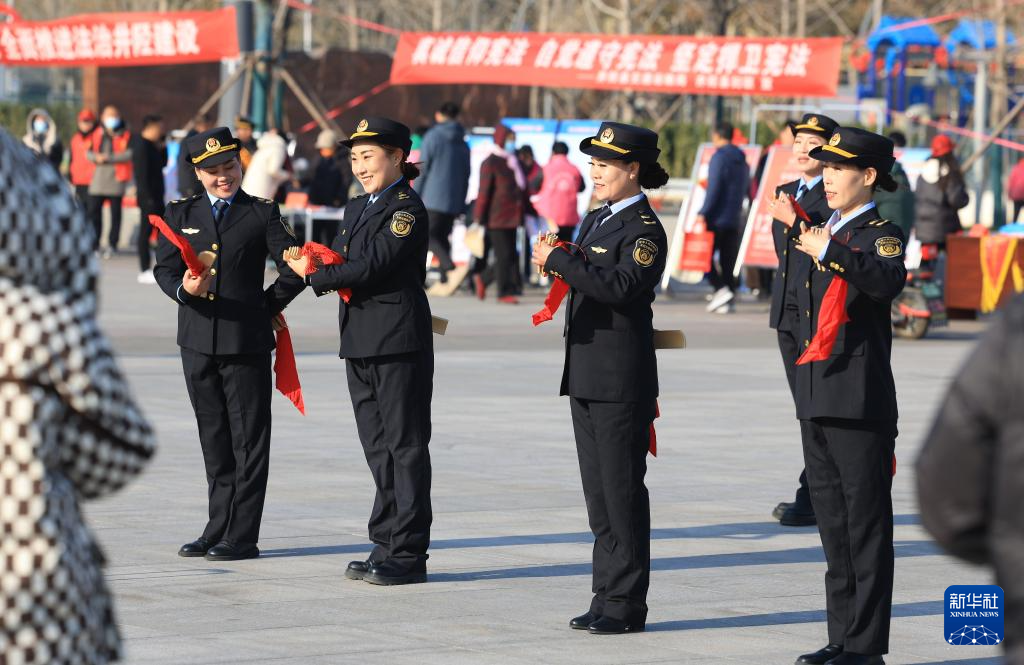 12月4日,在河北省石家庄市井陉全民健身中心广场,井陉县文旅局执法工作人员通过快板的形式进行宪法宣传。
