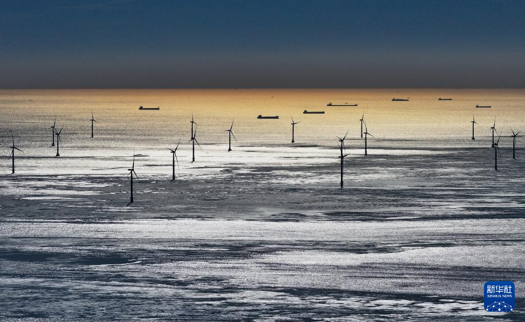 12月22日拍摄的河北省唐山市海港经济开发区辖区内的海上风电场(无人机照片)。