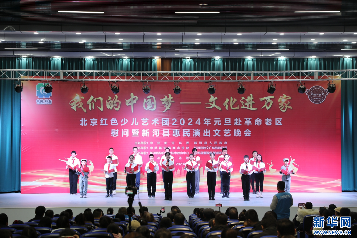 新华网石家庄1月1日电(吴广庆)2023年12月31日晚,北京红色少儿艺术团赴革命老区慰问暨新河县惠民演出文艺晚会在河北省新河县职教中心报告厅举行,本次活动由新河县委、新河县人民政府主办。