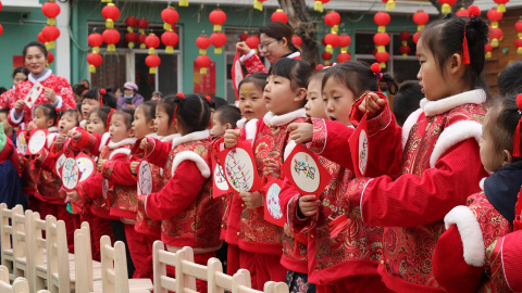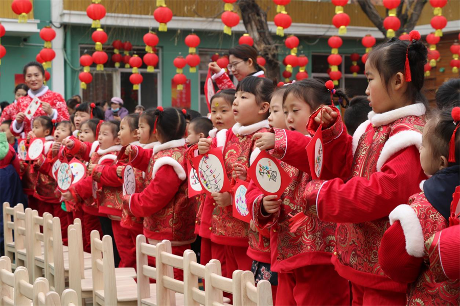 近日,河北省保定市曲阳县在县第一幼儿园开展“欢欢喜喜过大年”年俗文化进校园活动,曲阳县歌舞戏曲协会、曲阳县老干部局戏曲协会的演员表演了评剧、河北梆子、豫剧等精彩节目。活动现场的“民俗集市”上,香甜美味的爆米花、酸甜可口的冰糖葫芦等美食吸引了众多小朋友围观品尝。