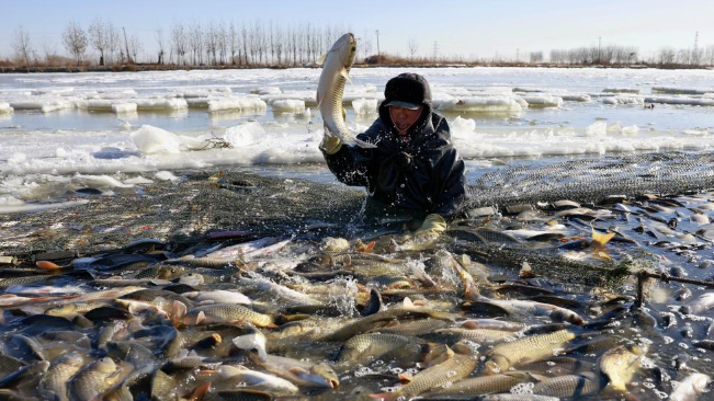 春节临近,河北省唐山市丰南区的淡水鱼养殖户破冰捕鱼,供应节日市场,丰富百姓餐桌。近年来,当地利用丰富的水资源优势,大力发展水产养殖,促进农民增收,助力乡村振兴。