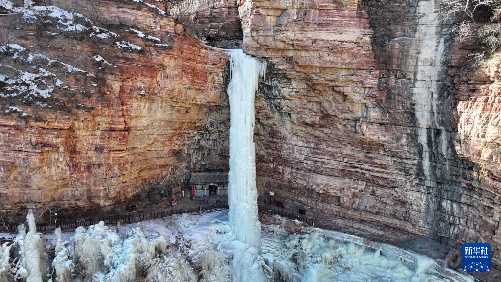 这是赞皇县嶂石岩景区内的冰瀑(1月25日摄,无人机照片)。
