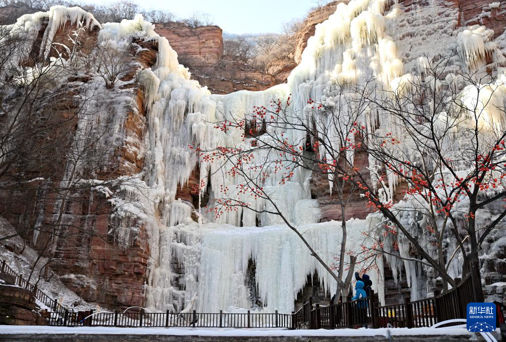 1月25日,游客在赞皇县嶂石岩景区观赏冰瀑。