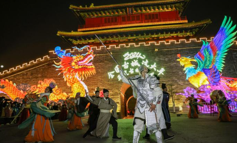 舞龙舞狮送祝福,欢欢喜喜过大年。当天的活动启动后,身着传统服饰的演员自南城门鱼贯而出,他们手持花灯,跳跃舞动,现场人头攒动,掌声、欢呼声不绝于耳。现场还有常山战鼓、徐水舞狮、井陉拉花等非遗队伍沿古城巡游。